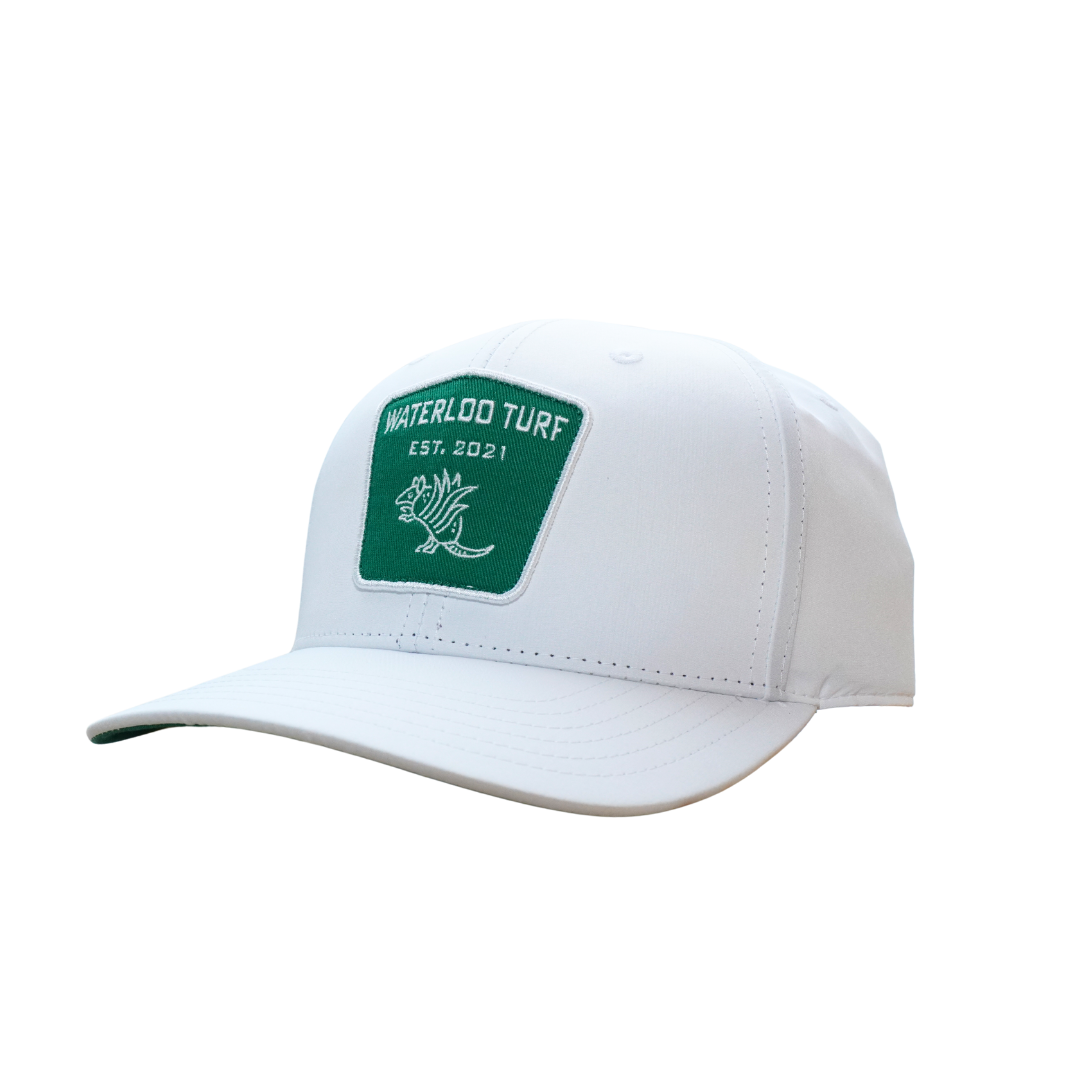 Classic meets durable with the Waterloo Turf "Backyard Legend" White and Green Trucker Hat. Built with cotton twill front panels and breathable navy mesh back panels, this structured 6-panel cap features a mid-crown, adjustable snapback fit. The curved visor and cotton sweatband provide comfort for all-day wear, while the embroidered Waterloo Turf patch adds a bold finishing touch. Perfect for everyday style or long days outdoors.